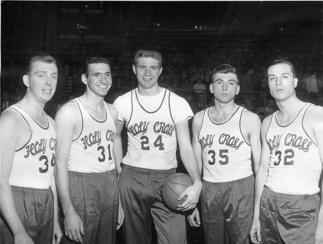 I selected Holy Cross because I wanted to go to a Jesuit school, and because it had the best basketball program at the time. Holy Cross was number one in New England, and I knew several of the players. Togo Palazzi, who also played for the Celtics and who was two years ahead of me, was a Union City guy. I had played against him in high school, and he was a terrific player. Another guy by the name of Earl Markey – he was a senior when I was a freshman in high school, and he had played in the same league that I had played in. I knew his brother, and I played semi-pro basketball with his brother. So I knew some of the people, I liked the school, and I liked the coach. So I went to Holy Cross.