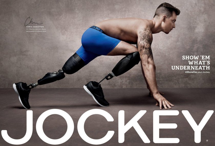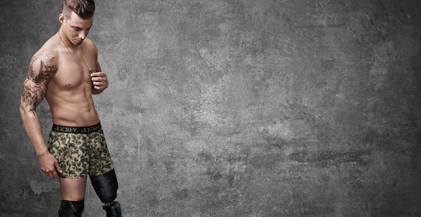 I have always been very selective about the companies that I work with. I want to be proud of my relationship with that company, and Jockey is no exception. The relationship started through the recommendation of a friend of mine, who said that Jockey was looking for a disabled veteran for a nationwide ad campaign. I was immediately interested. I did my research and applied for it. I had actually been wearing Jockey underwear before I even started working with them, so there was some familiarity there. But what impressed me most during my research was that Jockey is very much a family-run business. As I got to know the people that were running the campaign, and the people behind the company, I could tell that this was something that I’d be proud doing. I truly appreciate the work that they have put into it and the message that is behind it. The fact that they are celebrating everyday people who are going out there and making differences, and the fact that I got to be one of those people, was a very honorable thing for me.