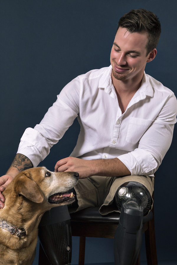 Working out really helped boost my confidence, and not just in how I looked. I started to focus on my purpose, which included looking for projects where I could share my message with as many people as possible. It was around this time that I heard about Michael Stokes, who was doing a photo series on injured veterans. I saw some of the shots that he’d taken of Alex Minsky, who’s now a friend of mine, and I decided to reach out. The photos were part of a project showcasing wounded and amputee veterans flaunting prosthetics and rock-hard abs in celebration of their post-war bodies, but when I saw them it was more about the power behind the pictures than the sex appeal. For me, the photos showed the world that just because I was different, I didn’t have to be different. I could still be this strong person who could do anything, even though I was missing my legs.