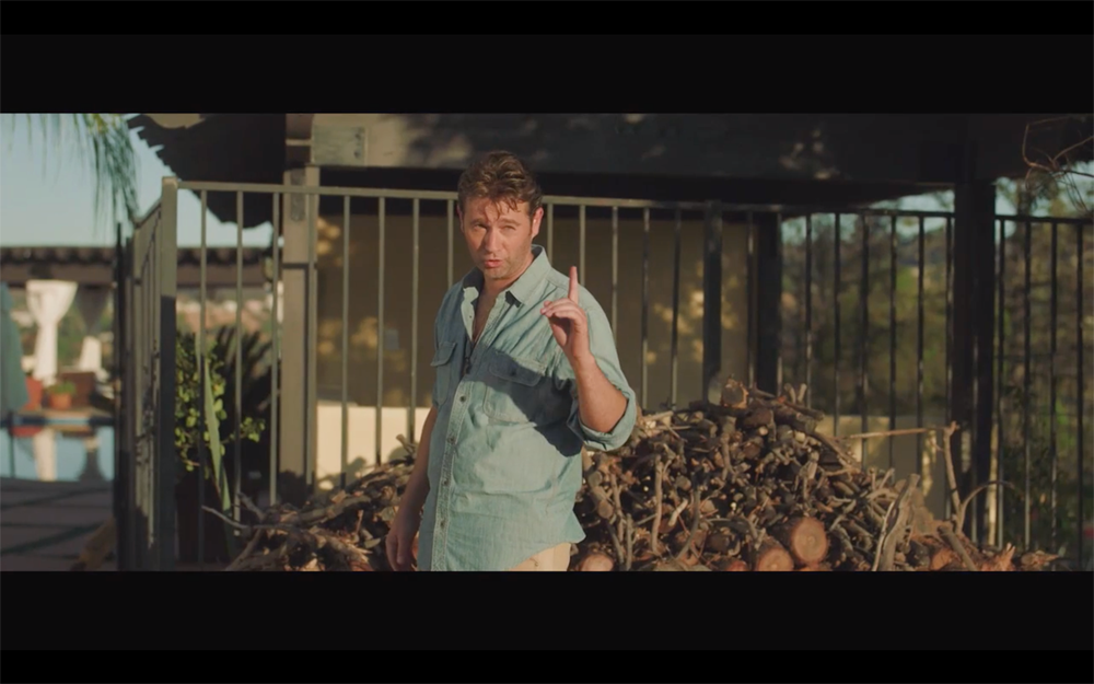 Now, Mailer can add DieRy to his resumé. The multi-hyphenate not only wrote and produced this taut thriller, he also plays the role of Tres, the ax-wielding groundskeeper who looks after Richard’s gated estate. In another delicious twist, he also happens to be married to the star.